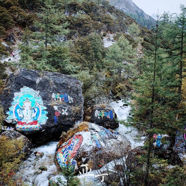 沿着右边金属栈道前往冲古寺,途径潺潺溪水,两岸郁郁葱葱,古树弯腰迎客,清风袅袅拂过……扎灌崩下车后,大口呼吸那清新并且略带泥土味的空气,仿佛为掏空的身体注入一股新鲜的鸡血,瞬时赶走了一半的疲劳。沿着右边金属栈道前往冲古寺,途径潺潺溪水,两岸郁郁葱葱,古树弯腰迎客,清风袅袅拂过……