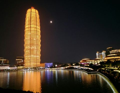 如意湖畔郑州CBD新地标玉米楼,据说玉米楼灯光据说每天都是不一样的颜色,结果我们乘兴而至,败兴而归。