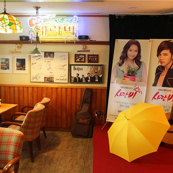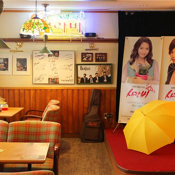 C’est La Vie 音乐茶座(음악다방 세라비)的名字取自法国人喜欢嘴边的一句话——“这就是生活”。一踏入咖啡馆大门,年代感十足的装修风格就会带你穿越到了韩国上世纪70 年代,而这里就是专为人气韩剧《爱情雨》打造的1970 复古风格的音乐茶座(韩国早期的咖啡馆刚兴起时多称为“茶座”,通常会放一些迪斯科音乐,成为当时年轻人约会的时尚场所),拍摄结束后便对游人开放参观。剧中众多场面皆取景于此,是主人公青春浪漫的友情、爱情故事发芽开花之地。“爱情似雨”,你听到了吗?