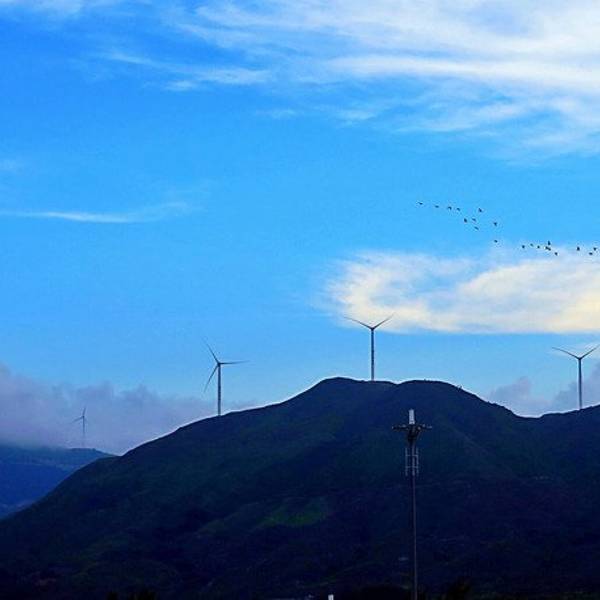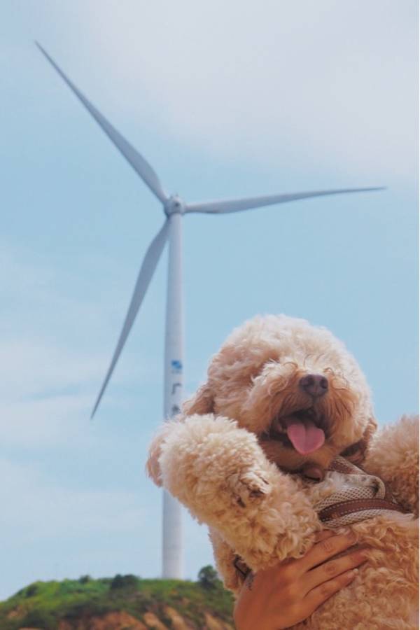 又叫风车山,山上几十座巨型风车,以及弯弯蔓延的盘山道,登上山顶还能远眺到双月湾,晴朗的天气里,抱着心爱的狗子站在山顶看风车、看大海,心情格外清澈美丽。