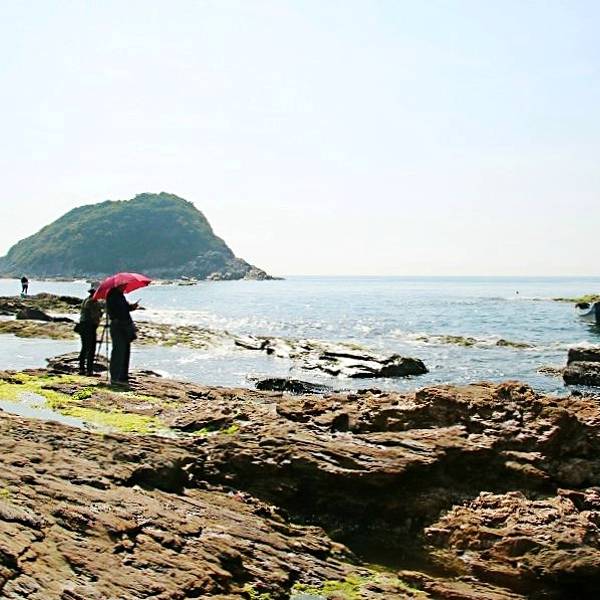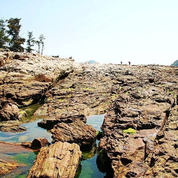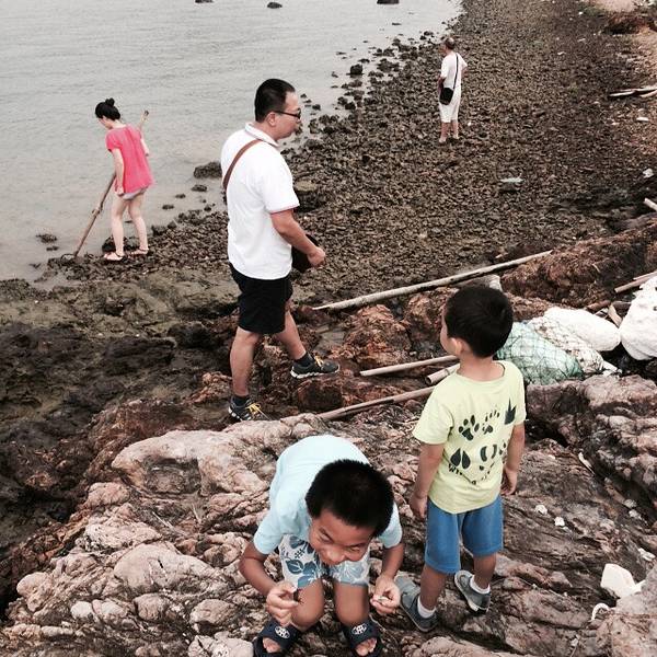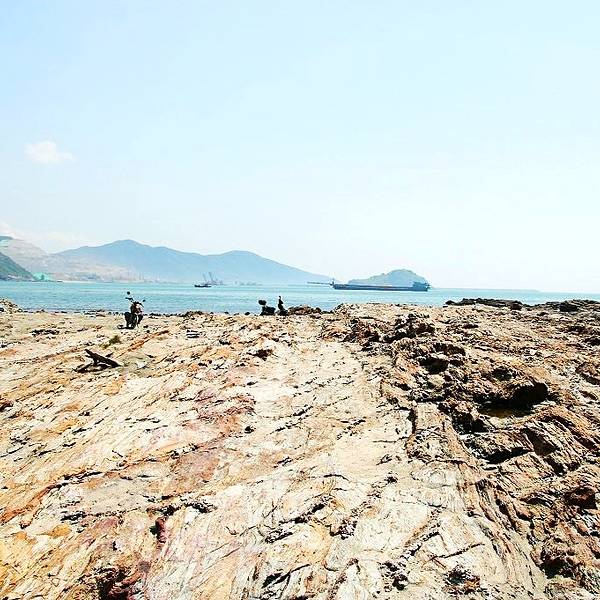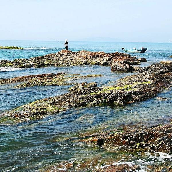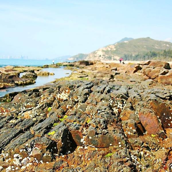 这里是海水冲蚀出的一片礁石海滩,黑色礁岩嶙峋壮观,随手就能拍出大片的感觉。礁岩旁有一小块平整海滩,免费入场,所以人有点多,但跟大鹏、大小梅沙的海滩比起来,还算是少的。海滩上可以遛狗,所以可以让狗子撒欢跑一会儿啦。