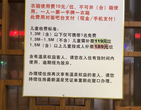 水池很脏,泡好温泉脱下来的泳衣洗出来水像泥水一般,不推荐去下榻的假日酒店赠送的温泉票,要先去边上验证身份信息后才能去拿手牌,更衣柜是强制一人一个收费租用的,10元一个。温泉馆面积不大,室内外的加起来池子也没多大,有铺天盖地的餐食广告,真不知道是饭馆还是温泉...下榻的假日酒店赠送的温泉票,要先去边上验证身份信息后才能去拿手牌,更衣柜是强制一人一个收费租用的,10元一个。温泉馆面积不大,室内外的加起来池子也没多大,有铺天盖地的餐食广告,真不知道是饭馆还是温泉馆。水池很脏,泡好温泉脱下来的泳衣洗出来水像泥水一般,不推荐去。 展开