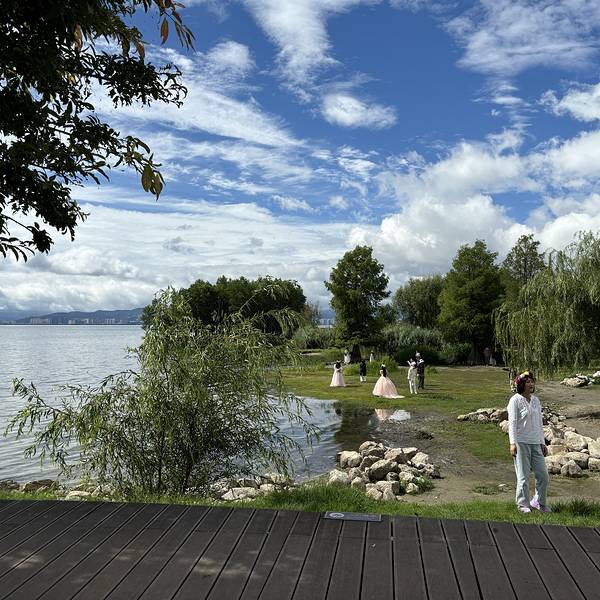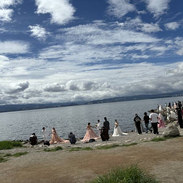 这里注意⚠️一定要做好防晒 我妈还是大意了 没有带帽子 我带了 我俩骑了俩小时 我妈回去脸和露在外面的胳膊都晒红了 后面几天有点脱皮 紫外线还是很强大 所以一定要做好防晒但是景色真的超级美 我没有做很细致的攻略 主打一个走到哪玩到哪 什么s湾啥的我也不知道在哪 但是随走随停随玩 哪里都很好看和我妈的两个小车有一点点彩虹好多拍婚纱照的打捞海草的工作人员 我们有个浴缸 我妈还捡了点水草 又带了一路顺着洱海向南骑了点 向北骑了点 一共玩了大概俩小时吧 还了车直接打车回民宿 去海东 展开