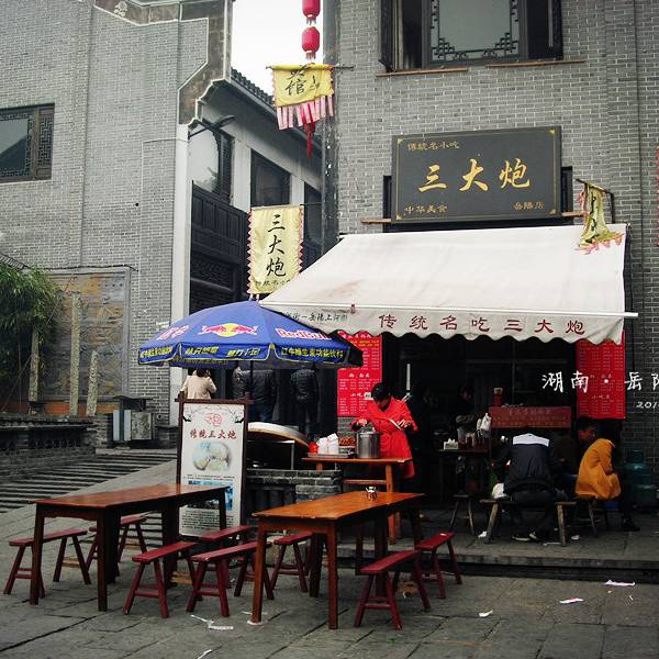 逛完岳阳楼景区,一直往北走就是有名的汴河街,到达此处的公交车非常多:10路、15路、19路、21路、22路、31路、50路等至汴河街站下车即可到达。 汴河街内店铺林立,多以吃食、纪念品为主,非常值得一逛!综艺节目《爸爸去哪儿》的火爆荧屏,也让我第一次知道了“三大炮”这个美食,所以路过三大炮摊子时果断坐下,要了一份。加之老板热情吆喝,也不好拒绝!三大炮,8元/碗,每碗三个,香糯可口,甜而不腻,蘸上特质的芝麻汤汁,吃完一碗还要一碗,此外三大炮店家还售卖桂花汤圆,特别好吃,也是8元/碗。强烈推荐去汴河街一定要吃碗三大炮,经济又美味,才不枉岳阳走一遭!如果有幸,距离三大炮50米远的地方有个岳舞台的表演碰巧赶上的话,可以看一看!
