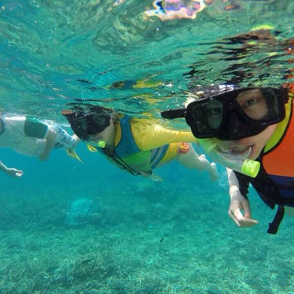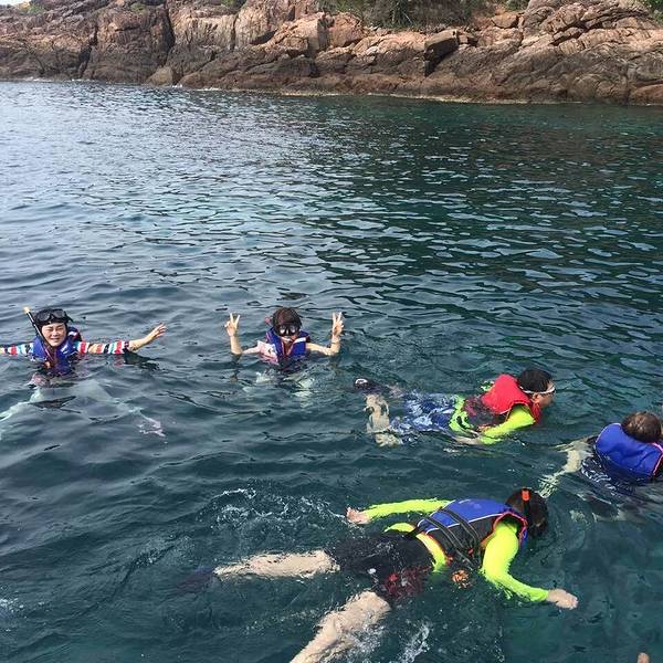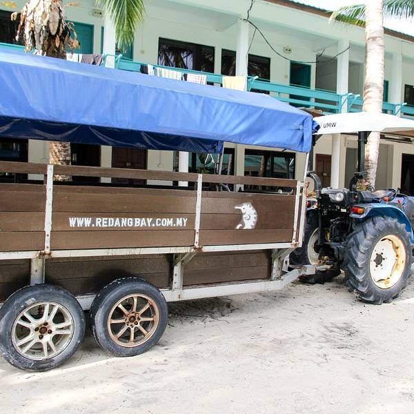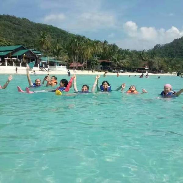 轮渡很大,很稳,没有晕船的现象,大家顺利到达热浪岛,下船后,我们找到热浪海湾的时尚又拉风的——拖拉机 哈哈哈岛上唯一的交通工具5天4晚的海岛之旅就这样开始了。。。。啦啦啦啦。。。。。每天的大致行程安排就是:6:00 看日出 7:00 自助早餐 9:00 准备出海,前往浮潜部门集合,登记(海洋公园浮潜或者寻海龟活动) 12:00 自助午餐 午休 14:00 公海浮潜或者热带雨林跋涉(需要提前报名) 16:30 下午茶时间或者体验深潜(自费) 19:00 自助晚餐或BBQ 啊哈,值得一提的是,热浪海湾度假村晚上的酒吧气氛很nice哦!古振邦的现场超级棒,此刻已成迷妹