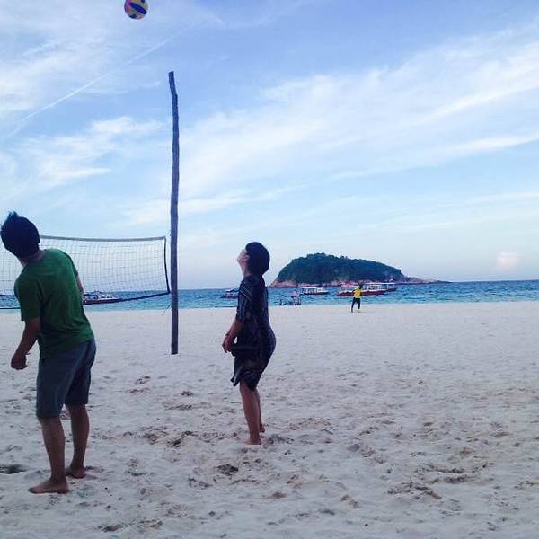 还有提醒大家的是,不一定每次都要同船一起出海浮潜,午休后,可以睡到自然醒,然后就在度假村前面的小山头浮潜(记得一定要穿救生衣),小鲨鱼,小丑鱼,幸运的话,可以看见鱼群风暴沙滩上还可以打排球,足球,很适合喜欢运动和拍照的朋友,在这里,和三五好友一起打排球,聊天聊地聊未来,都将是非常美好的记忆。这一趟旅行大家都很满意,要感谢热浪海湾度假村所有工作人员,特别是官方微信的客服妹子,行程设计合理,超耐心地帮我解答各种问题,在岛上遇到一些小问题,也及时地帮忙处理。为期五天四晚的热浪岛之旅在不知不觉中接近尾声,收拾好行李,退了房间便坐上返回登嘉楼码头的船,一路上我们依依不舍地望着逐渐远去,心里五味陈杂,欢乐、喜悦、满足与不舍交织在一起,不知道该用力挥手与这里说再见,还是把这一切情绪放在心底让它发酵成甘醇美酒。我相信随着时日逝去,在这里的回忆将会变的越发香醇、耐人回味。
