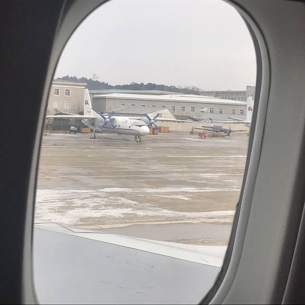 - 完全没有客人的机场大堂。我们乘坐的飞机,怎么看都觉得有点小啊。味道奇怪的果汁和朝鲜的宣传杂志