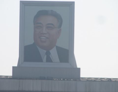 飞机上看到的朝鲜平壤机场很小,T1、T2连在一起刚刚到朝鲜的时候大家都不太敢拍照,连手机都小心翼翼地收着,生怕无意的举动触动了他们敏感的神经,所以下飞机后在机场只匆匆留下了这张照片