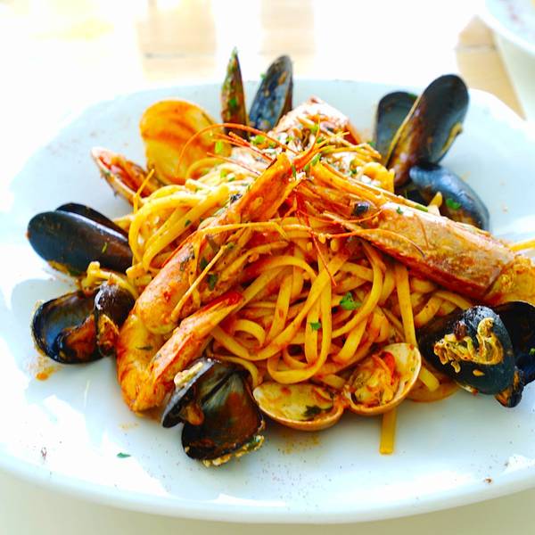 午餐选择了蓝旗海滩公路对面的一家名为Aquarius的餐厅,位置非常明显,很好找。虽然上餐很慢,等了足有半个多小时,一份猪排、一份海鲜面,味道非常不错,外加一大瓶水,一共44.8€。总之,对于来蓝旗的朋友们,...