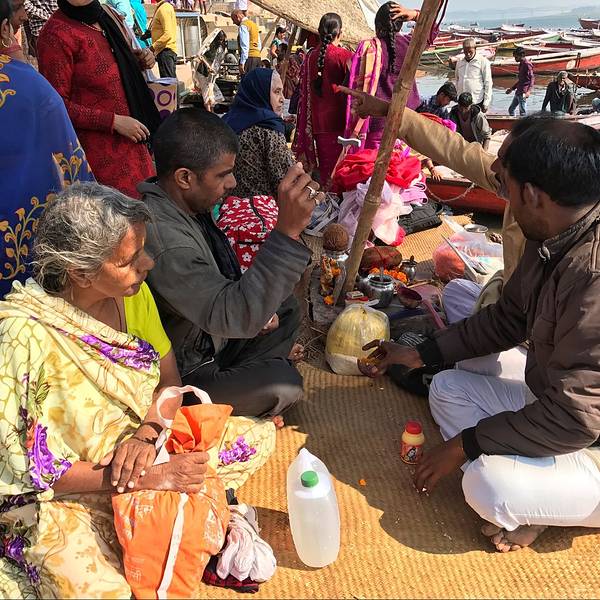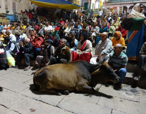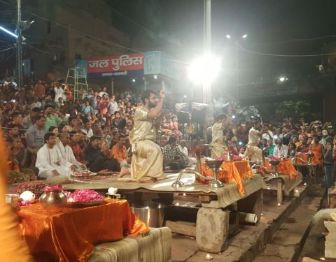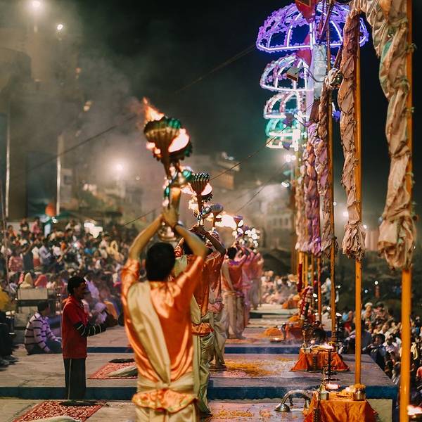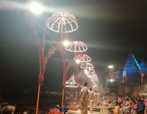 整个过程约1个小时,结束后人们会来到台前,用手轻抚圣火,摸摸自己的额头,希望能得到好运或庇佑。也会有人买一盏小河灯,随着鲜花放入恒河里,寄托自己美好的心愿。看着河里的星星点点,自己的思绪也会随它远去。虽然我们听不懂祭司吟唱的内容,但是我们住在那里的每一天都会去看夜祭。我无法用言语来形容那是一种什么样的感觉,白天的拥挤嘈杂和晚上的神圣安宁,给了我一个完整的瓦拉纳西。