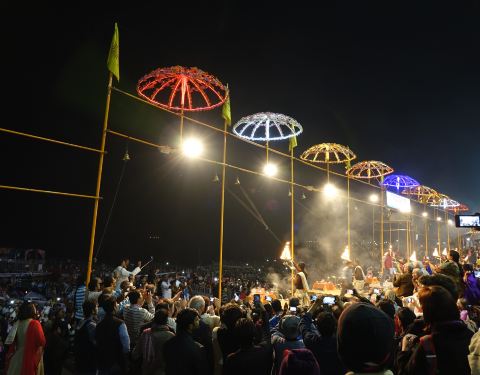 每天晚上,人和牛和谐相处,共同观看夜祭。恒河夜祭一年365天,不管刮风下雨,从不间断达萨瓦梅朵河坛是瓦拉纳西恒河边上最热闹的一个河坛,是大梵天神执行十马祭祀的地点。恒河夜祭一年365天,不管刮风下雨,从不间断。每天晚上,人和牛和谐相处,共同观看夜祭。