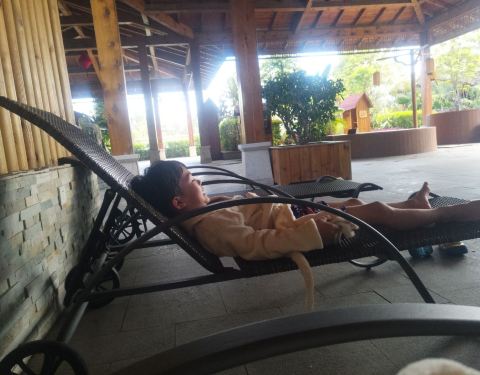 5.选择适应自身的高、中、低温度的温泉池,一般从低温到高温,每次不宜超过15分钟,及时补充水分。