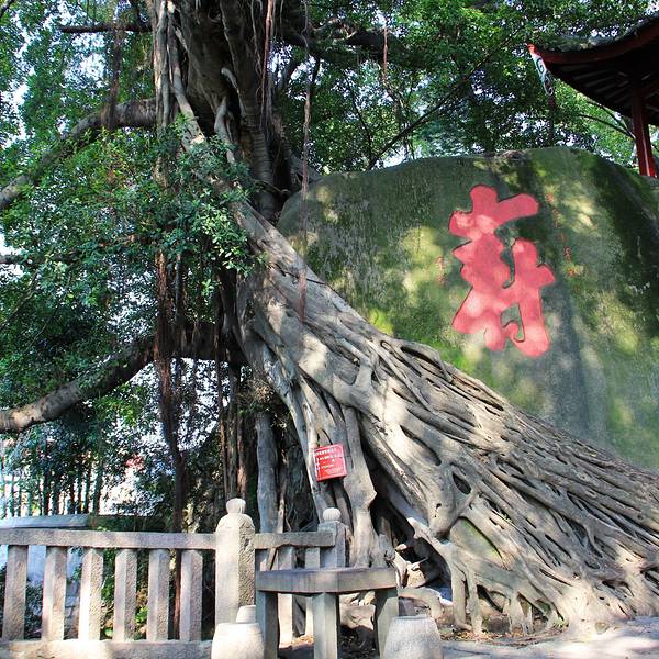 “寿榕”生长在峭壁之上,树干直径9米,树高30多米,树冠直径达40多米从定光寺东边廊道上的戚光祠侧门,可进入戚公祠景区:万象亭、榕寿岩、平远台、补山精舍、蓬莱阁、戚光祠厅、醉石、醉石亭。
