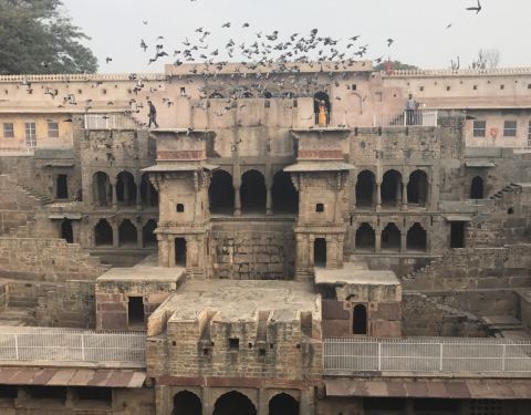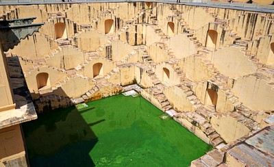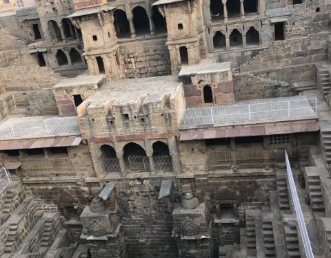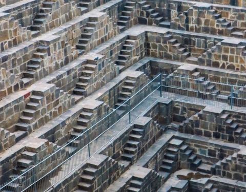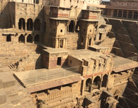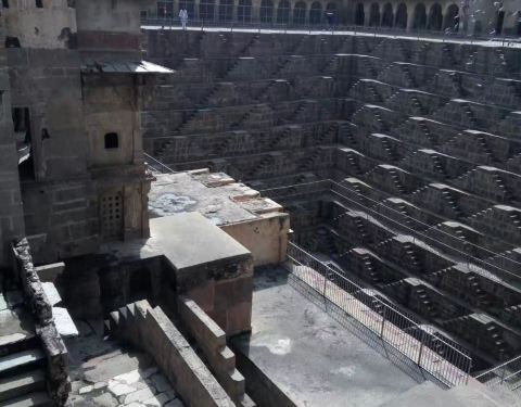 月亮水井是印度规模较大的一座阶梯井。此井建于公元9世纪,深30米,旁边的阶梯有13层,共3500个台阶,放眼望去拱门回廊精致雕刻,看起来就像是座古老的地底宫殿,但其实它是一座千年水井,游客称其为“倒扣过来的金字塔”。阶梯井的设计目的是蓄水的同时,可以让民众比较容易的接近水源,通常阶梯井底部也会有闸门用以提升水位,在需要用水的季节将水位升至3-4层的位置。不可思议之处在于这口井建於西元800年左右,直到今天这口井的功能依旧完善。据说因为该地区是一个乾旱的地区,所以当时的王下令盖一个深井以储存足够的水,也为了在炎热的夏季到来时这里能够让村民避暑,听说井的底部可以比外面凉上摄氏5-6度。在下面的7层阶梯处现在围上了铁栏杆,据说因为当地人视井水为圣水,一般人不能随便接近,但是在当地也有传说这口井其实是恶魔挖的,之所以建造这么多的台阶,是为了如果有人不慎将币掉落,由于台阶太多,根本来不及捡起,就一定会落入井中。