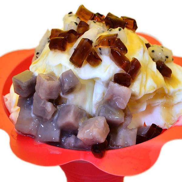 宝岛菠萝团菠萝冰,冰如其名看起来就像是一个波罗麵包一般,在冰上头更放了一个小小的宝岛饼乾装饰,相当讨喜可爱!挖开波罗造型的冰,丰富的配料就藏在里头,有粉圆、芋园、珍珠、奶酪等等,每一口都让人惊喜!