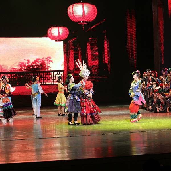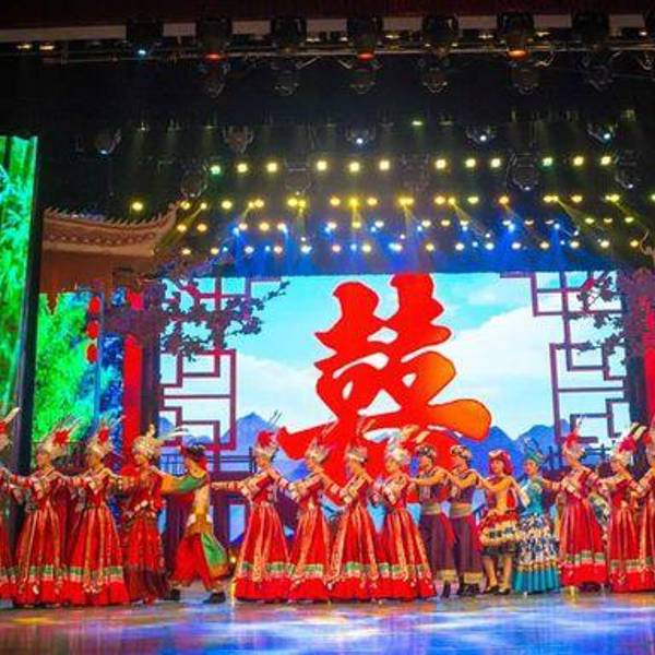 贵州大型民族歌舞晚会——《多彩贵州风》,是一席探秘中国民族文化的饕餮盛宴,一张多彩贵州走向世界的亮丽名片,一场赏心悦目享誉全国的视听盛宴!《多彩贵州风...晚上观看贵州大型民族歌舞晚会——《多彩贵州风》