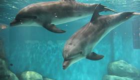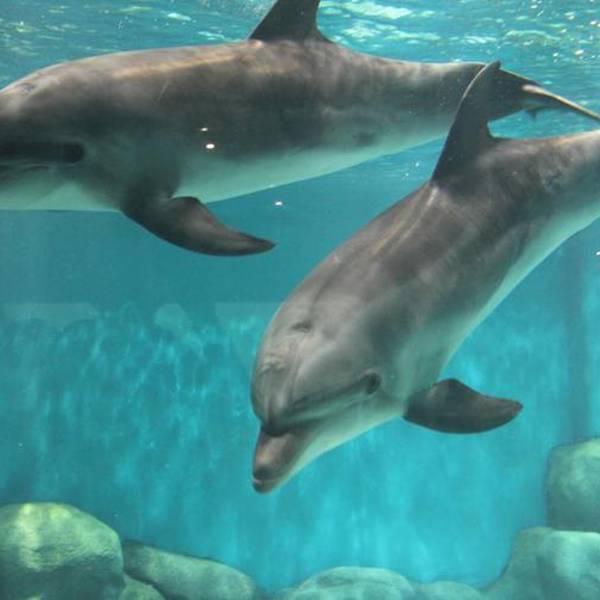 若说隧道是“开胃菜”,那“海洋剧场”绝对是整场游玩的“重头戏”。每天两场的海豚表演是园区的王牌项目,提前15分钟到场,观众席已坐满大半。随着欢快的音乐响起,4只太平洋瓶鼻海豚跃出水面,完成了一连串高难度动作:顶球、转呼啦圈、与人共舞,最惊艳的是“空中飞人”环节——驯兽师站在海豚背上,海豚加速冲刺,将驯兽师稳稳托出水面,在空中划出一道优美的弧线,全场掌声瞬间沸腾。表演过程中,驯兽师还会穿插科普小知识,比如“海豚的呼吸孔在头顶”“每只海豚都有独特的叫声”,让小朋友在欢乐中收获知识,这点比单纯的娱乐表演更有意义。