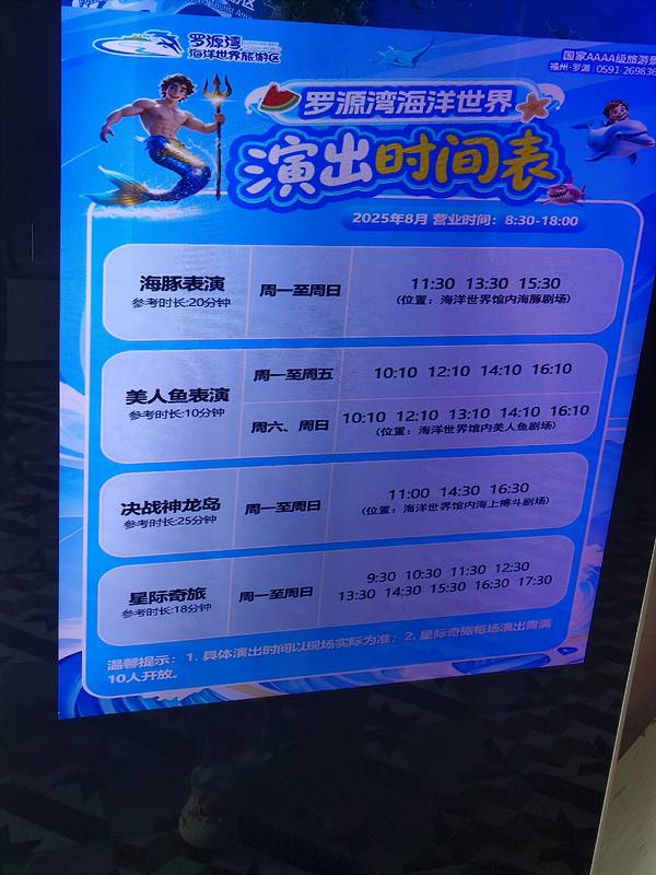 金骆驼 沉浸式漫游罗源湾海洋世界:一场治愈与科普并存的蓝色盛宴作为福州周边口碑颇高的海洋主题乐园,罗源湾海洋世界自开业起便成为亲子游、情侣度假的热门之选。近期趁着周末闲暇,我专程前往打卡,从入园到离园的6小时里,既感受到了海洋生物的奇幻魅力,也体验到了乐园在运...作为福州周边口碑颇高的海洋主题乐园,罗源湾海洋世界自开业起便成为亲子游、情侣度假的热门之选。近期趁着周末闲暇,我专程前往打卡,从入园到离园的6小时里,既感受到了海洋生物的奇幻魅力,也体验到了乐园在运营细节上的用心,整体体验可圈可点,值得分享给计划出行的朋友。