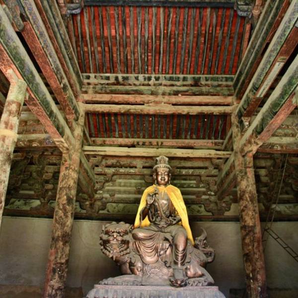 除了文殊殿建筑结构、窗棂格和辽代大铁钟,最值得一看的莫过于文殊殿墙上的壁画,待到开放后,可以一睹真容。