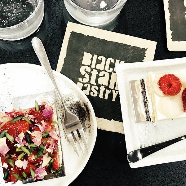 极具创意和颜值的网红蛋糕!Black Star Pastry是悉尼很有名的一家蛋糕店,而这家蛋糕店最有名的就是西瓜蛋糕。一开始听到西瓜蛋糕这个名字的时候,就觉得非常特别,西瓜竟然可以做成蛋糕。但其实这款网红蛋糕的全...极具创意和颜值的网红蛋糕!Black Star Pastry是悉尼很有名的一家蛋糕店,而这家蛋糕店最有名的就是西瓜蛋糕。一开始听到西瓜蛋糕这个名字的时候,就觉得非常特别,西瓜竟然可以做成蛋糕。但其实这款网红蛋糕的全称应该是草莓西瓜蛋糕,因为蛋糕不仅有西瓜,还有草莓。这款蛋糕的颜值非常高,表面覆盖这草莓和花瓣,当然上面的花瓣都是食用花瓣,草莓非常甜,一点都不酸。然后草莓下面就是松饼和蛋糕,然后再下面就是西瓜。蛋糕的层次非常分明,一口咬下去的时候口感也非常明显,西瓜清甜多汁,再配合表层草莓花瓣的香甜,真的非常非常好吃,连我这个平时很少吃甜食的女汉子都赞不绝口!这款草莓西瓜蛋糕的价格也是非常经济,只需要8澳元,如果用餐的人比较多,还可以购买6人份的,相对价格会优惠一些。如果时间比较充足,而且店铺有座位的话,也建议点上一杯咖啡细细品味。Black Star Pastry在悉尼有三家分店,最有名的就是Newtown店,那里的店面相对比较大,而且位置会多一些,但是由于是网红店,难免还是要排队的。虽然Newtown店在郊区,但是有地铁直达,乘坐地铁到Newtown站下车步行几分钟就到,所以还是很多人会慕名前来的。但是如果时间不够充足,可以考虑去市中心那家分店,就在维多利亚女王大厦旁边,但那家分店相对客人也会比较多。由于客人都比较多,所以这款喝水都是比较自助的,可以自己选择柠檬水或者苏打水。西瓜蛋糕真的是我吃过最特别最好看的一款蛋糕,对于蛋糕控来到悉尼一定要品尝一下噢!