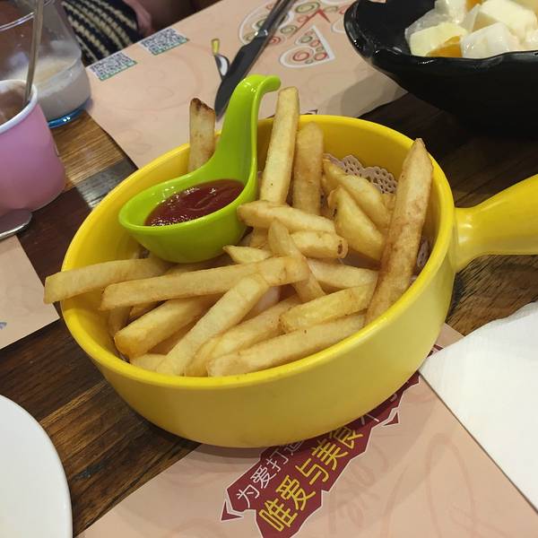 来到北戴河的第一餐,味道很好,价格适中,二楼还有一块区域是给小朋友玩的,非常赞。 店铺在联峰北路上,距离刘庄民宿区不远,我们就住在刘庄一个民宿,步行过来大概十几分钟。店铺装饰很清新,门口爬满了爬山虎,门口伞下还有两张小桌子,天气不晒的话,坐在外面感觉应该也很好。店铺里面到处装饰着小熊,楼下有几桌沙发座位上还摆着一只大熊,很受小朋友喜欢。店铺里面很多绿植,很多小装饰,很适合拍照。二楼还有一块区域给小朋友玩,真是很贴心。 饭点来的话,人很多需要等位。建议早一点来或者错过高峰来。金牌土豆披萨的味道真的是很不错,很不错,尤其刚出炉就热吃,料很足又脆又香,芝士可以拉很长的丝,还有一个大薯边很赞。店铺里是一个开放式的大厨房,坐在一楼的话,可以直接看见师傅做披萨。店里还有一个儿童套餐,放在米妮的盘子里的意面,配着小火腿水果什么的,很受小朋友喜爱。但我觉得味道偏甜,可以改进一下。其他小食中规中矩。 我们在北戴河玩了三天,在这家吃了两次,性价比很高,味道也很好,推荐大家尝试。