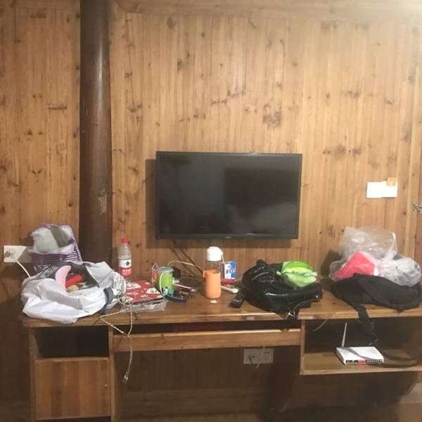 体验了山里人家,土木结构的2层小土楼,比较坑!我住一楼,潮的要死,霉味很重!地方小,床也小!