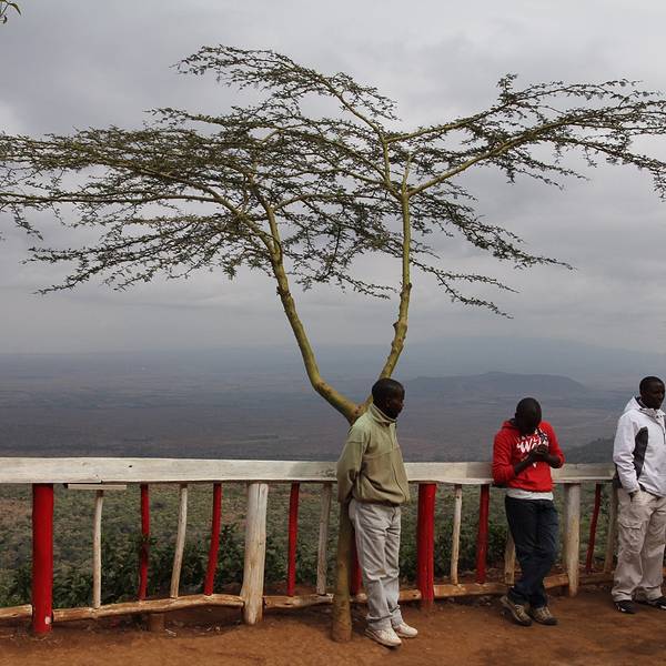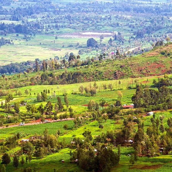 在肯尼亚境内,裂谷的轮廓非常清晰,它纵贯南北,将这个国家劈为两半,恰好与横穿全国的赤道相交叉,因此,肯尼亚获得了一个十分有趣的称号:“东非十字架”。裂谷两侧,断壁悬崖,山峦起伏,犹如高耸的两垛墙,首都内罗毕就坐落在裂谷南端的东“墙”上方。登上悬崖,放眼望去,只见裂谷底部松柏叠翠、深不可测,那一座座死火山就像抛掷在沟壑中的弹丸,串串湖泊宛如闪闪发光的宝石。裂谷东侧的肯尼亚山,海拔5199米,是非洲第二高峰。