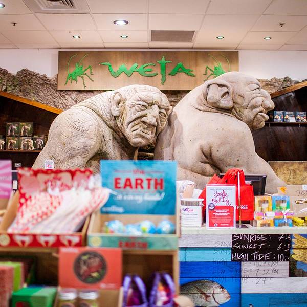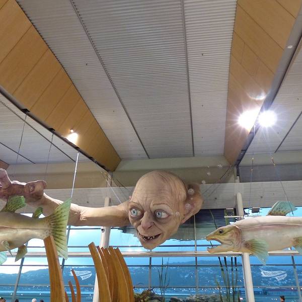中土字体的Middle of middle-earth!敢这样给自己命名的也只有惠灵顿机场了,霸气侧漏~候机大厅里,骑着巨鹰的甘道夫与抓鱼的咕噜,据说check in大厅还有一个史矛革,取完行李忘了上去真心后悔TT彼得杰克逊爵士,再摆酷你也是个胖子好么