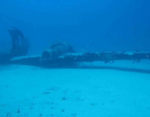在海底20米处看见人工暗礁,在24米深处见沉船残骸。在海底40米深的海底,可见坠落飞机残骸,色彩斑斓的鱼儿穿梭其中。