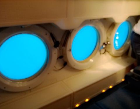 亚特兰蒂斯号潜水艇是专门设计用于海底旅游的潜艇,可乘坐48名乘客,为大型观光艇。它位于威基基海滩外30至40米深的太平洋中,需坐摆渡船前往。 舱内有两排座椅是背靠背的,游客坐下后面对着舷窗。每个人面前都刚好有一扇透明舷窗,这样就可很轻松地观赏海底世界了。当艇仓门关闭后,服务人员会用英文告诉大家把面前的耳机带好,建议选择自已喜欢的语言频道。潜艇上共有两名工作人员,一名是驾驶员,一名是解说员。驾驶员全神贯注地开船,解说员则用流利的日语和英文做热情的解说。