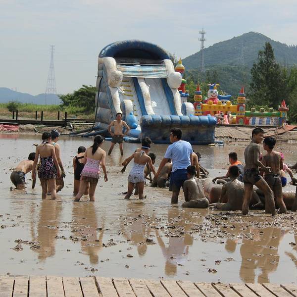 4.滑泥主题公园挺大的,而且有很多的项目可以玩耍,去的时候还看到了很多学生在里面,里面都是泥,活动内容还是很新颖的,所以小孩子特别的喜欢。要换泳衣才可以进去,玩完后是有地方可以冲洗的,但是来这里如果要赶上涨潮的话就不可以玩了。其实这个公园并不大,所以人多才好玩,建议来这里玩的最好是熟悉的朋友会比较好一些,到了这里是自己游玩的,在旁边是有淋浴房,先换好衣服,有衣柜的,再进去。提示:这个衣柜是要交押金的,所以出门最好带点现金。