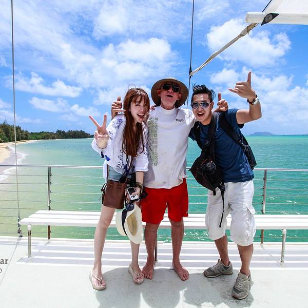 然后乘小船穿过已有800年历史的古代夏威夷鱼塘到达神秘岛,穿行神秘岛以后,再乘双体船进入Kan...先乘巴士到海边,然后乘小船穿过已有800年历史的古代夏威夷鱼塘到达神秘岛,穿行神秘岛以后,再乘双体船进入Kaneohe海湾,近距离观看欧胡岛地表之一的帽子岛。如果天气好的话,还能看到海边的海龟。神秘岛是古兰...先乘巴士到海边,然后乘小船穿过已有800年历史的古代夏威夷鱼塘到达神秘岛,穿行神秘岛以后,再乘双体船进入Kaneohe海湾,近距离观看欧胡岛地表之一的帽子岛。如果天气好的话,还能看到海边的海龟。神秘岛是古兰尼的私人沙滩,游客可以在这里玩独木舟、皮划艇、冲浪、沙滩排球等,尽情享受私人空间。我们只是在这里乘船,没有在这里停留玩耍。在船上遥望牧场周边的房子。青山绿水,依山傍海,画面很美。从船上看远处,真真是海天一色,让人忘记自己身处何方。 展开