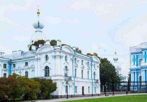 斯莫尔尼修道院并不是在这个地方的斯莫尔尼大教堂,修道院是教堂附近的一片建筑,但是同样还是挺漂亮的,这里受到过当时皇室的资助。