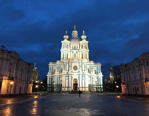 斯莫尔尼修道院,又叫做斯莫尔尼宫,是圣彼得堡行程里最后一个景点,是在最后一天晚上去打卡的,夜里...斯莫尔尼修道院,又叫做斯莫尔尼宫,是圣彼得堡行程里最后一个景点,是在最后一天晚上去打卡的,夜里的蓝色建筑简直是太美了,让人流连忘返。