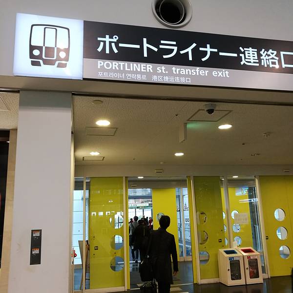 - 接驳巴士停在神户机场的入口,上二楼便往后看便是Portliner 电铁站