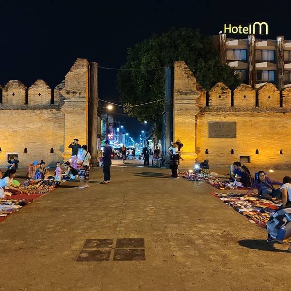 夜市是清迈的一大魅力所在,其中清迈周六夜市就是一个不错的选择。每到周六下午4点,清迈古城南门外的Wualai路就会封闭为步行街,沿路都是便宜又美味的小吃摊、水果摊,但更多的是卖各色工艺品的摊位,还会碰到街头卖艺的人。这里虽然规模不及周日市集,但近年来人气也越来越旺了。 晚上7、8点是夜市的高峰期,建议早些过来,5点左右摊铺就摆得差不多了。从古城南门(即)出来,走到Wualai路上就是,记得一定要过护城河,不要跟混淆。