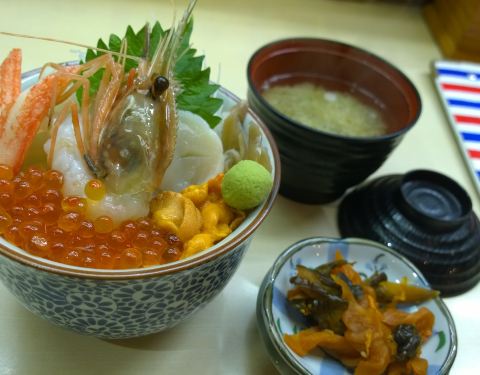送的味噌汤和酱菜也都很好吃,要吃好味的海鲜丼来这家准没错。正好是清晨到的函馆站,所以就来朝市转转