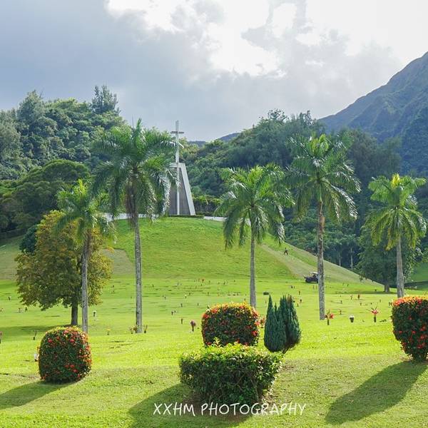 到了门口看到成片的墓地,而且还都放上了鲜花花束,寄托着人们对故人的哀思,是比较肃穆的地方。并没有进去参观,其实这里就是日式的神庙谷,是许多夏威...View spot7:神庙谷 Valley of the Temples Memorial Park