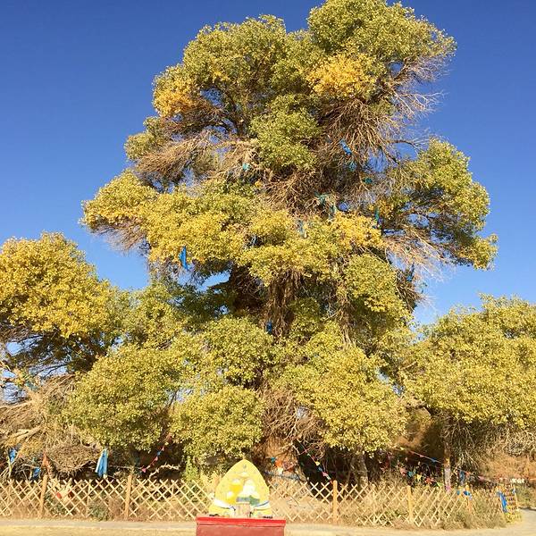 神树据说是我国境内最古老、最大、最粗的一棵胡杨树,树龄800多年。