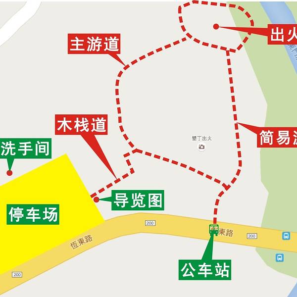 景区很小,从停车场或公车站进入,最远来回也就走200多米,从停车场进入的路好走一些,并且有简易厕所,建议游玩时间约20分钟。【特别提示】