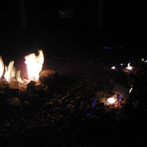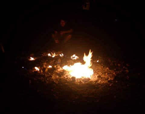 当你穿过蜿蜒曲折的小路,出火景区内地面上赫然出现那一团团跳动的火焰时,感觉很是神奇,不由自主的就兴奋起来,随着其它人笑呀跳的疯了起来。这个景区的名字也很是形象直白,就叫”出火“,地面上冒出的火。哈哈