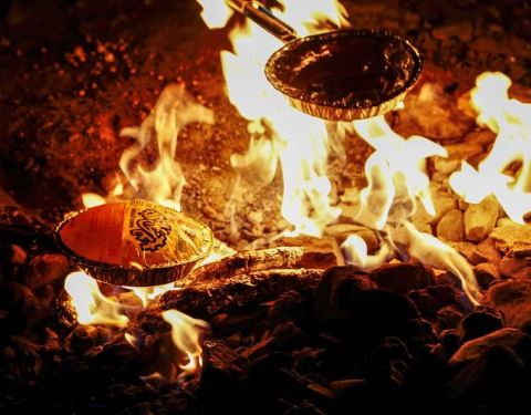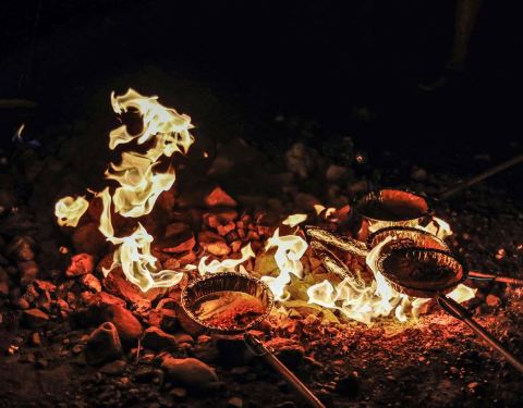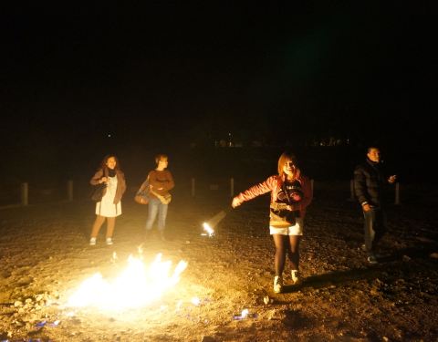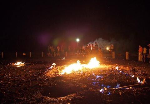 在出火特别风景区,观看从地下冒出的火苗照亮夜空。