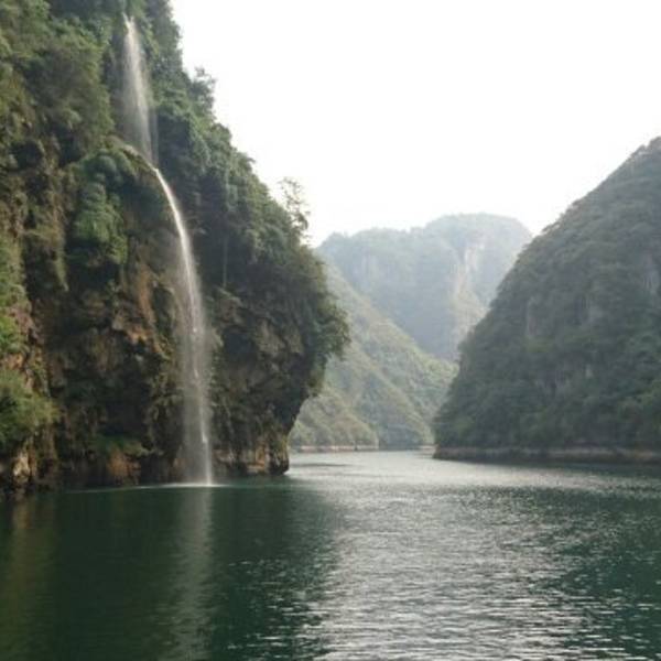 山清水秀,风光优美,可与三峡比美,值得一游的好地方