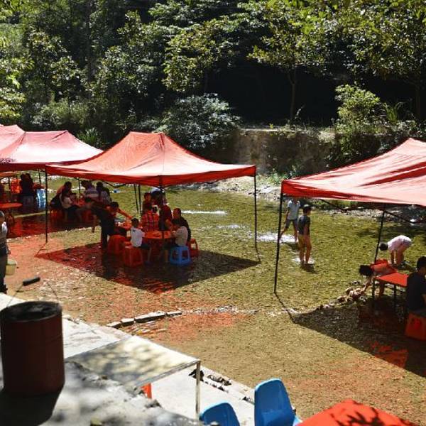 饭菜味道一般吧,再往里还有一家比这家看上去干净一些。两个孩子看见水和沙子就走不动了。第一站舞阳河景区第一站舞阳河景区山上雾蒙蒙的因为下雨景区人不多,一进景区,就看到有个老奶奶搭的个棚子,有水果蔬菜、粽子、玉米、土豆饼,还有腊肉田螺,我们也饿了,就准备在这里吃一点饭菜味道一般吧,再往里还有一家比这...第一站舞阳河景区山上雾蒙蒙的因为下雨景区人不多,一进景区,就看到有个老奶奶搭的个棚子,有水果蔬菜、粽子、玉米、土豆饼,还有腊肉田螺,我们也饿了,就准备在这里吃一点饭菜味道一般吧,再往里还有一家比这家看上去干净一些两个孩子看见水和沙子就走不动了 展开