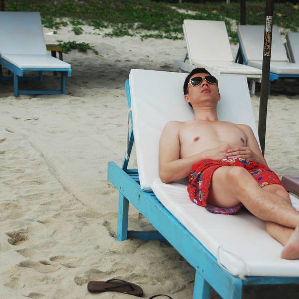 早上太阳还不是很大,越到中午海越蓝。这个海滩消费超低,摩托停车费1w,沙滩躺椅3w两个,我们在这里晒了一上午太阳,总共消费也就人民币十几块钱,这是在国内得不到的满足,想起在三亚80块一个的躺椅,简直是不要脸。。。果照满天飞,超便宜的躺椅,粑还用一口泰语骗出租躺椅的小哥说他是泰国人,而我是他的中国女友,他今天没戴戒指出来,不要脸。早晨的海滩人少少自拍模式把我跑死了。人渐渐多了起来自拍模式跑疯了去哪里都要留下一个超级玛丽跳一个蛋疼的姿势太阳没出来,海水还是很凉的此图有亮点。