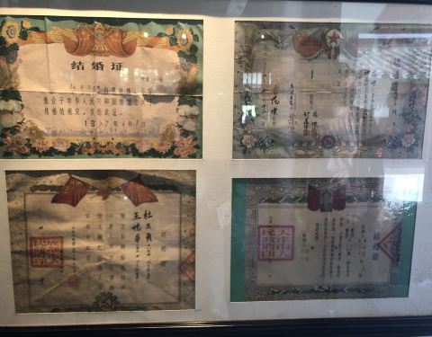 ...列了各个时期的结婚照,还挺有意思的,展示了结婚前后用到的东西,墙上还有简介,介绍沙家浜婚礼习俗