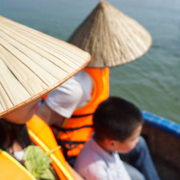 进了村子遇到一个当地人搭讪,说可以带我们去坐船,大人300000.小孩200000.越南盾!一共800000越南盾,换算人民币270元3个人,看了一下某宝,320一人的一日游,感觉自由行真是太省钱了!迦南岛风景不错(*๓´╰╯`๓)♡,民风很纯朴,划船的大妈很热情,送了手工草皇冠戒指💍 ,还送了小朋友一只小鱼🐠 ,很有爱(⑉°з°)-♡!簸萁船是这边的特色,平衡能力真是杠杠的!