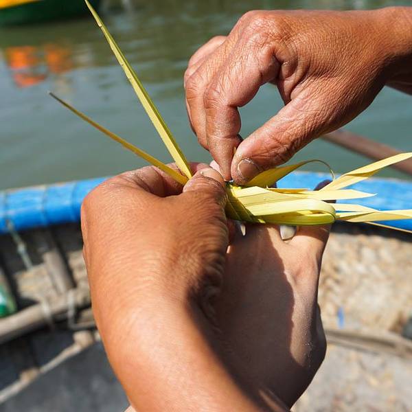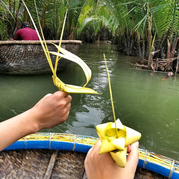 迦南岛是位于会安秋盆河的一片岛屿。在这里不坐一坐簸箕船会很遗憾的,毕竟簸箕船也是越南的一大特色迦南岛是位于会安秋盆河的一片岛屿。整个水域周围被一片水椰林环抱。在这里不坐一坐簸箕船会很遗憾的,毕竟簸箕船也是越南的一大特色。岛上还可以钓鱼。越南的春节很奇怪,家家户户都用一大簇一大簇醒目的黄色菊...迦南岛是位于会安秋盆河的一片岛屿。整个水域周围被一片水椰林环抱。在这里不坐一坐簸箕船会很遗憾的,毕竟簸箕船也是越南的一大特色。岛上还可以钓鱼。越南的春节很奇怪,家家户户都用一大簇一大簇醒目的黄色菊花装扮。三角花、临河木屋、水椰林……浓浓的东南亚风情在这里得以体现。划船人还会用当地的植物编织成昆虫、戒指、项链、草帽带在客人身上。他们划船也很稳很用力,与客人互动也很积极。后来我们给划船人小费60万越南盾作为感谢。 展开