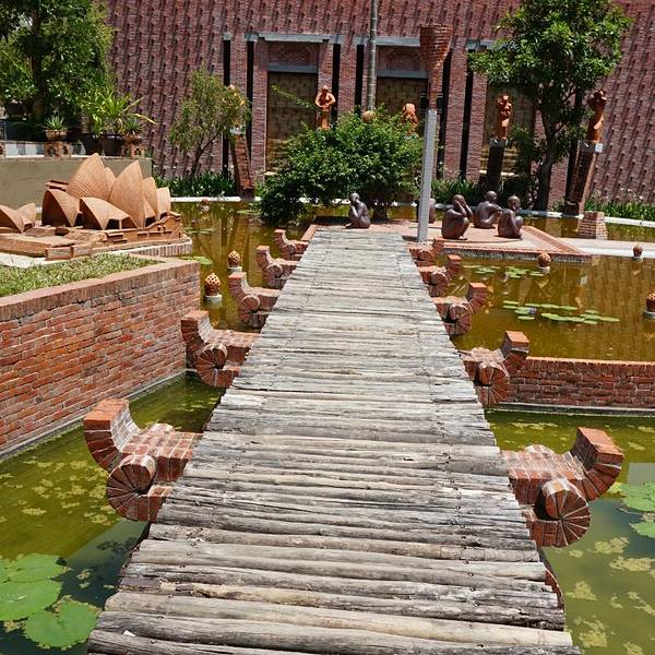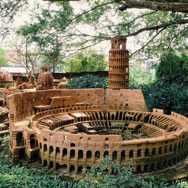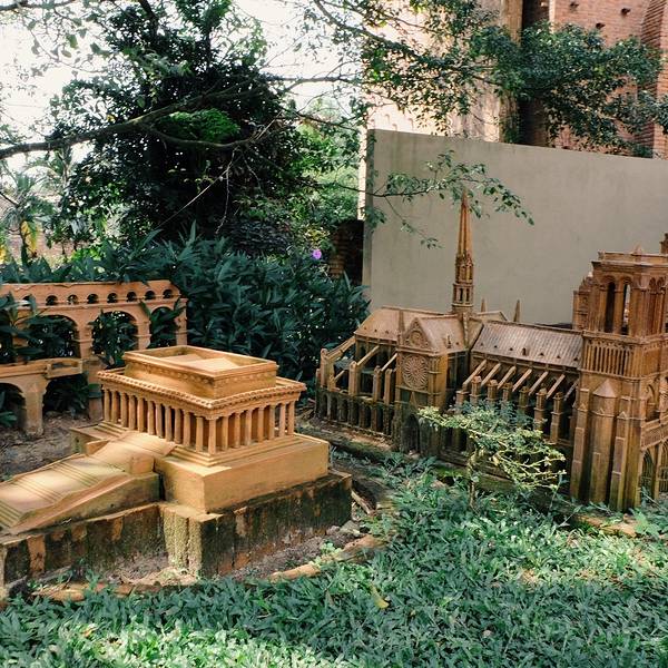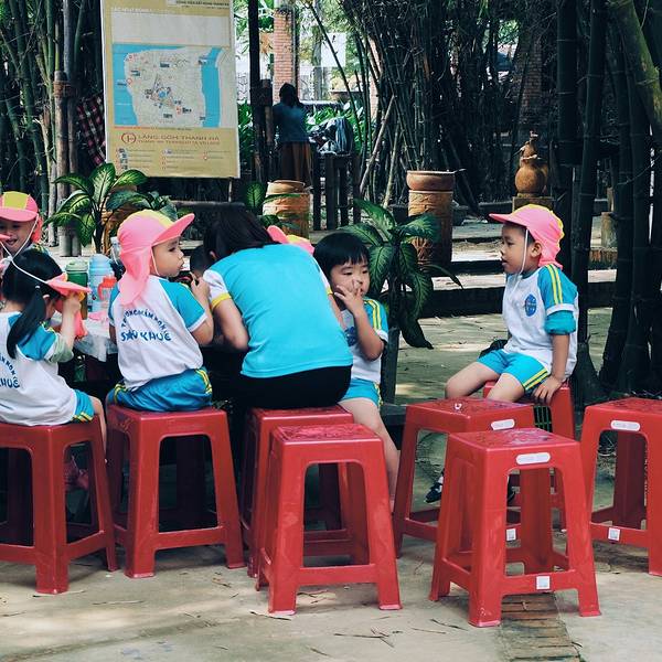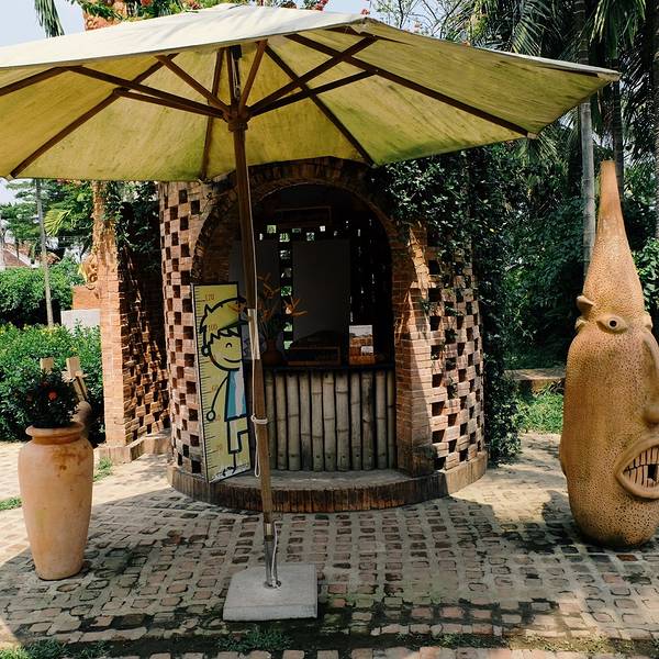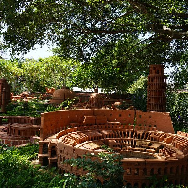 开放时间: 8:30 ~ 17:30,门票30000d一张。这是越南最大的陶器公园。占地6000平方米,2011年开始建造,游客较少,骑摩托车从会安古镇出发沿着河边大概15分钟,自行车30分钟就到了,感觉更像是陶泥做的世界之窗,内外陈列模仿世界各国家的标志建筑。骑车到门口时,对面的人就会吆喝那边不能停车,要停到对面,5000d停车费,最后我们发现这是私人的院子,为了赚点小钱。其实完全可以停在景区非大门口的路边。游客很少,碰巧遇到幼儿园的小朋友们在郊游,好萌的小帽子。