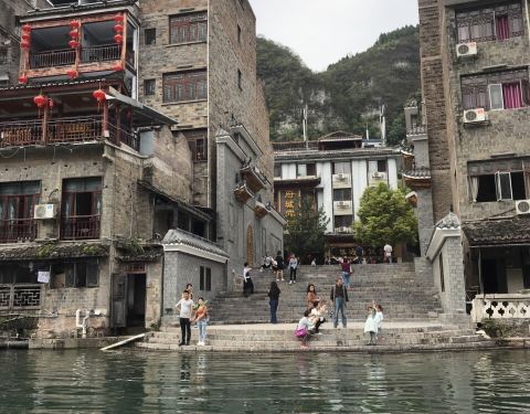 ...而来,S型穿镇远古城,古城沿河依山,所以啊,来古城一定坐船好好亲近下舞阳河哦,感受下舞阳河的美